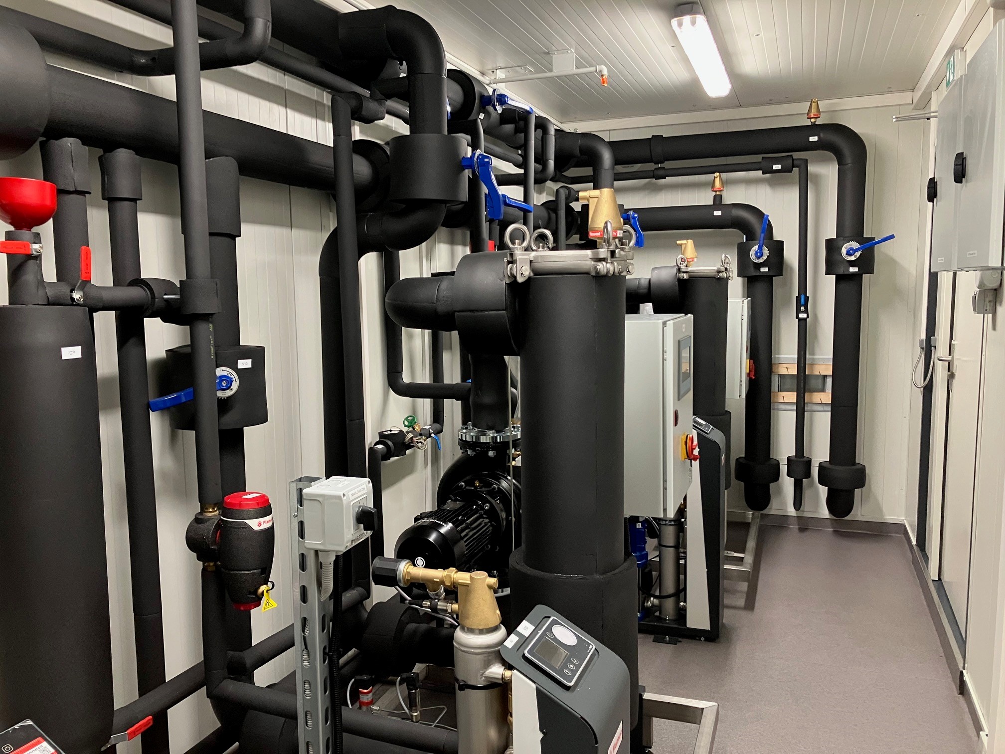 At Aalberts, we are providing solutions to this challenge through prefabricated container and skid solutions that are engineered, built, and tested before they ever reach the site. Each unit is fully assembled with our proven hydronic technologies, combining boiler room systems, connection solutions, and advanced heating water treatment into one complete, ready-to-connect module. This approach delivers plug-and-play performance, enabling faster installation on site and reducing dependence on scarce local labor.
